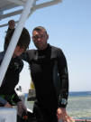 Mężowi w niedzielę na Sparmann zrobiło się nudno, kiedy płynął na 15 m przy poręczówce. zaczęliśmy sie więc bawić w podawanie gazu - no i latarka poooszła.................. Co prawda zgodnie zanurzyliśmy się za nią na 27 m, ale światełka nie było widać, wynurzyliśmy sie więc z powrotem do poręczówki i zgodnie popłynęliśmy oglądać jesiotry........